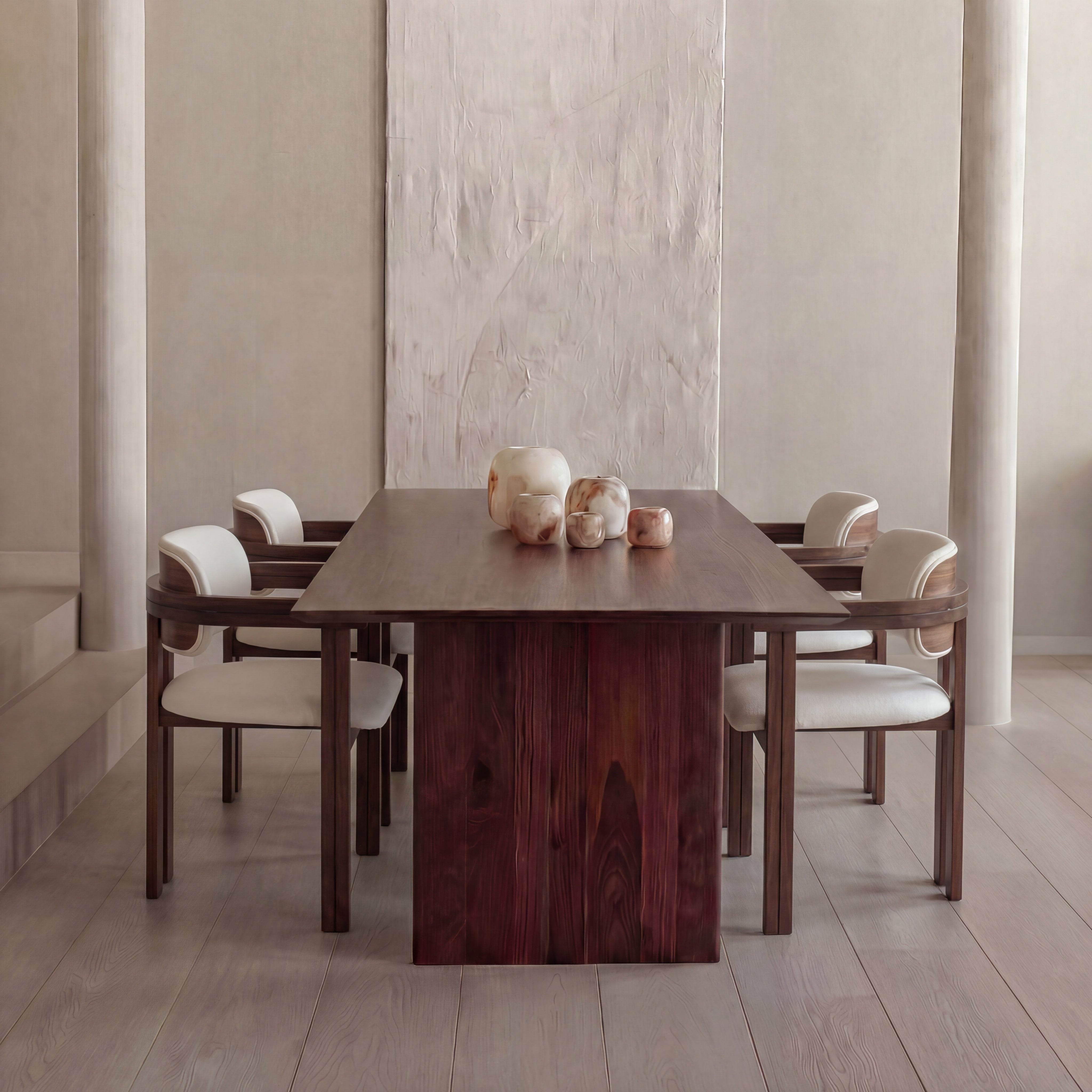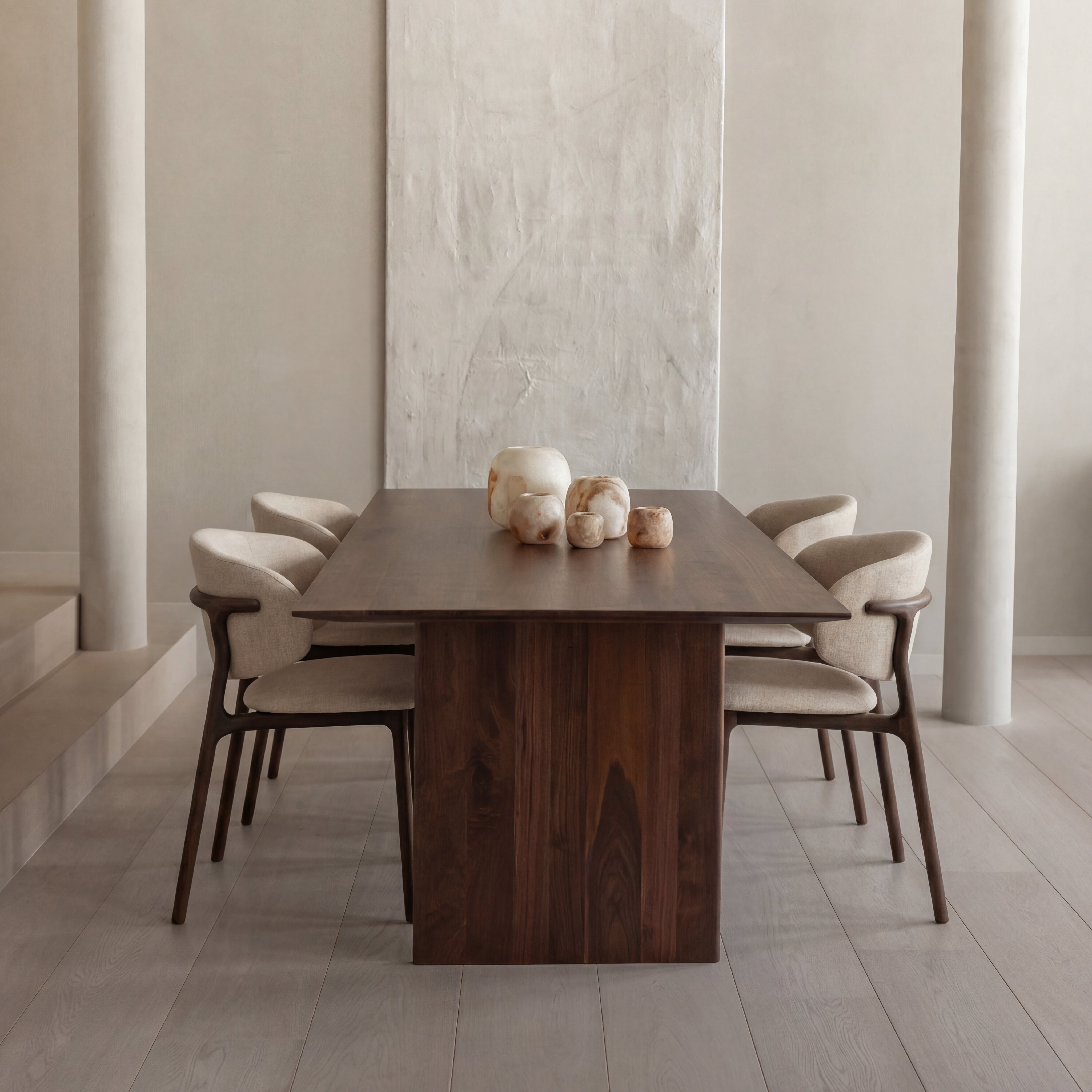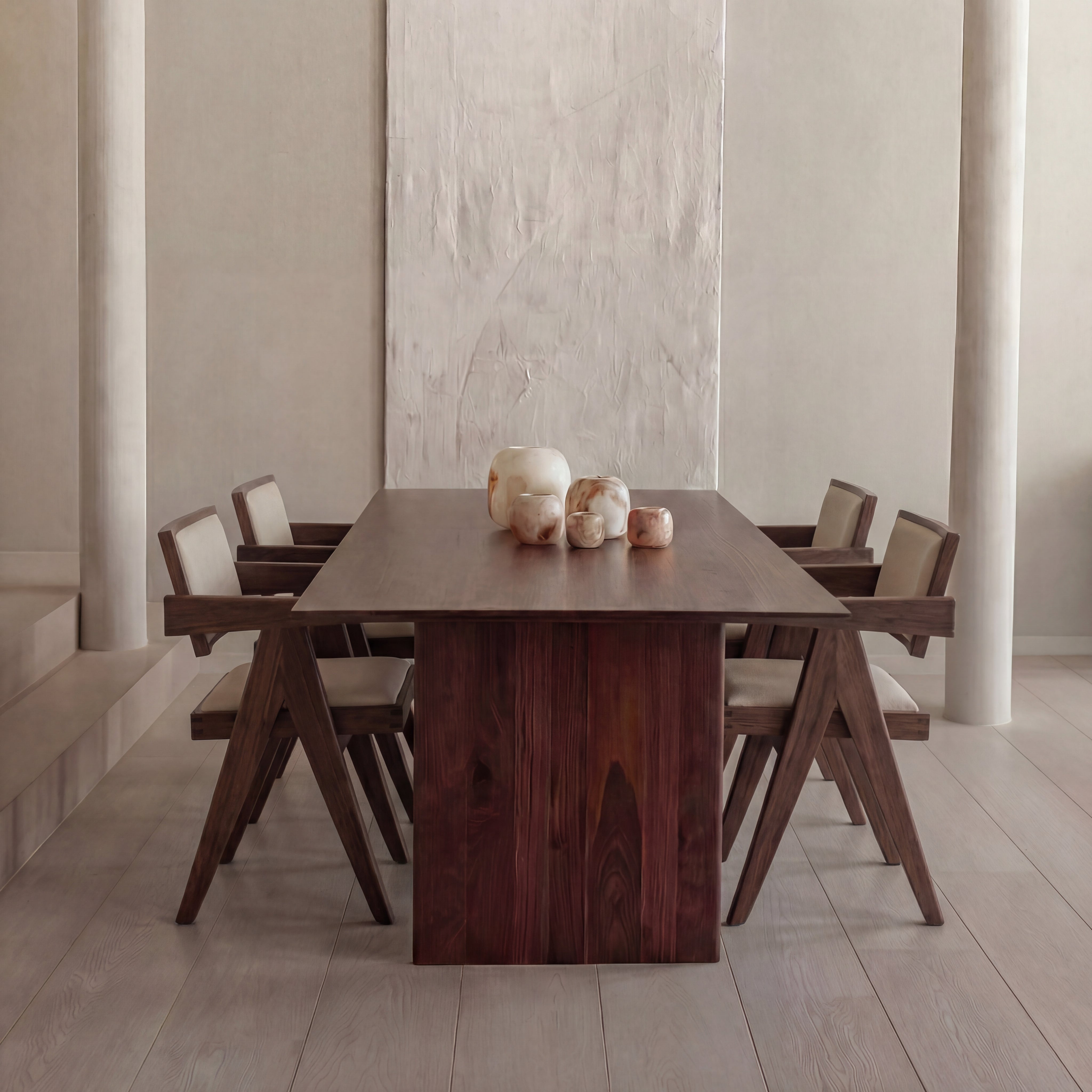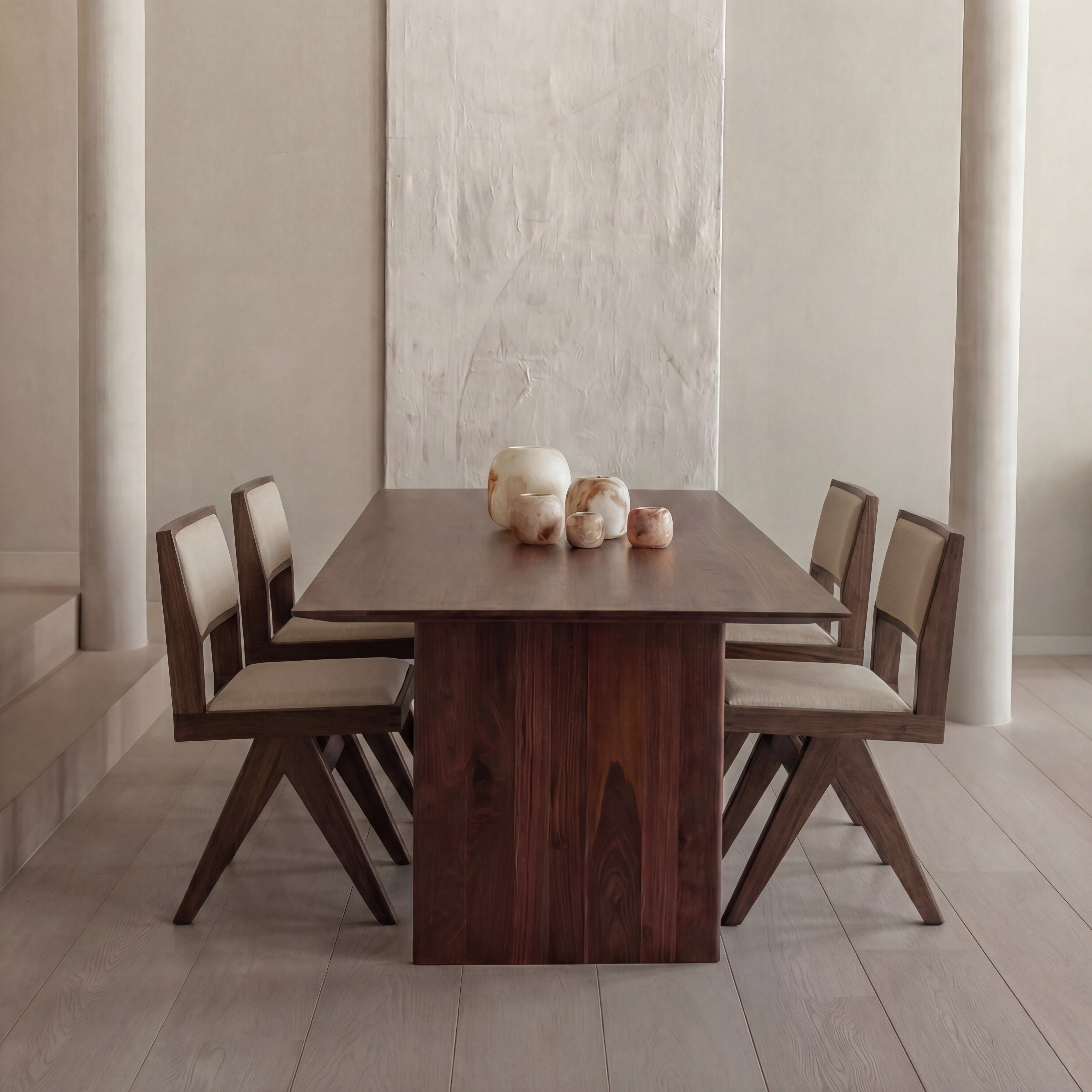 Met de Mazu eettafel creëer je een plek waar mensen graag blijven hangen. Het massieve houten blad en de verfijnde afwerking zorgen voor een tafel die niet alleen mooi oogt, maar ook voelt als een uitnodiging. Of het nu gaat om lange diners met vrienden of een snelle ontbijtsessie – de Mazu maakt elk moment bijzonder.