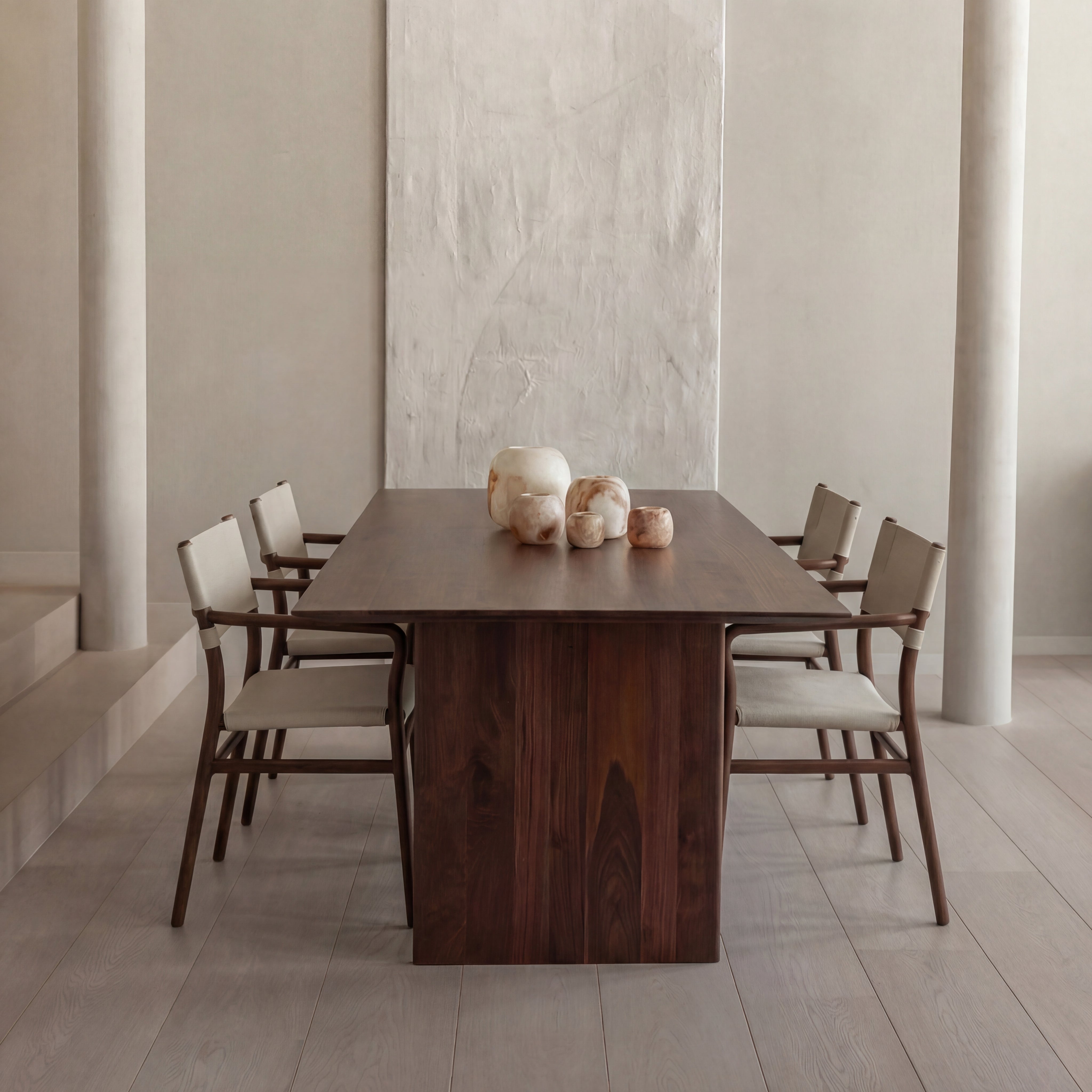Met zijn krachtige solide poten en strakke verjongde lijnen is de Mazu tafel een meesterwerk van minimalistisch design.